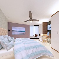 Este modelo se caracteriza por tener dos amplias habitaciones, cada una con baño, además de dos cajones de estacionamiento.