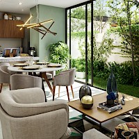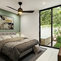 Bona estará conformado por 42 departamentos divididos en dos torres de tres niveles con departamentos de 1 y 2 habitaciones. El modelo Garden se carecteriza por contar con dos habitaciones, la principal con área de clóset vestidor y contar con la opción de estar en planta baja con área de jardín y piscina.