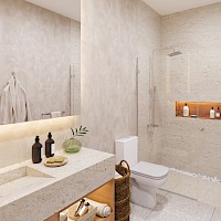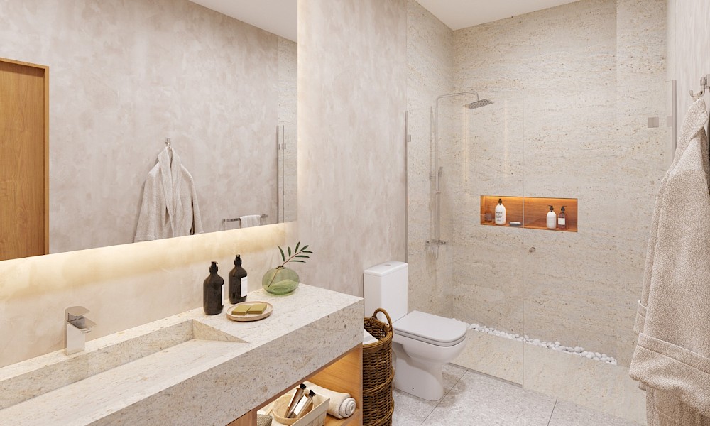 Este modelo se caracteriza por tener una habitación con baño propio y uno para el área social.