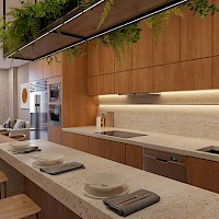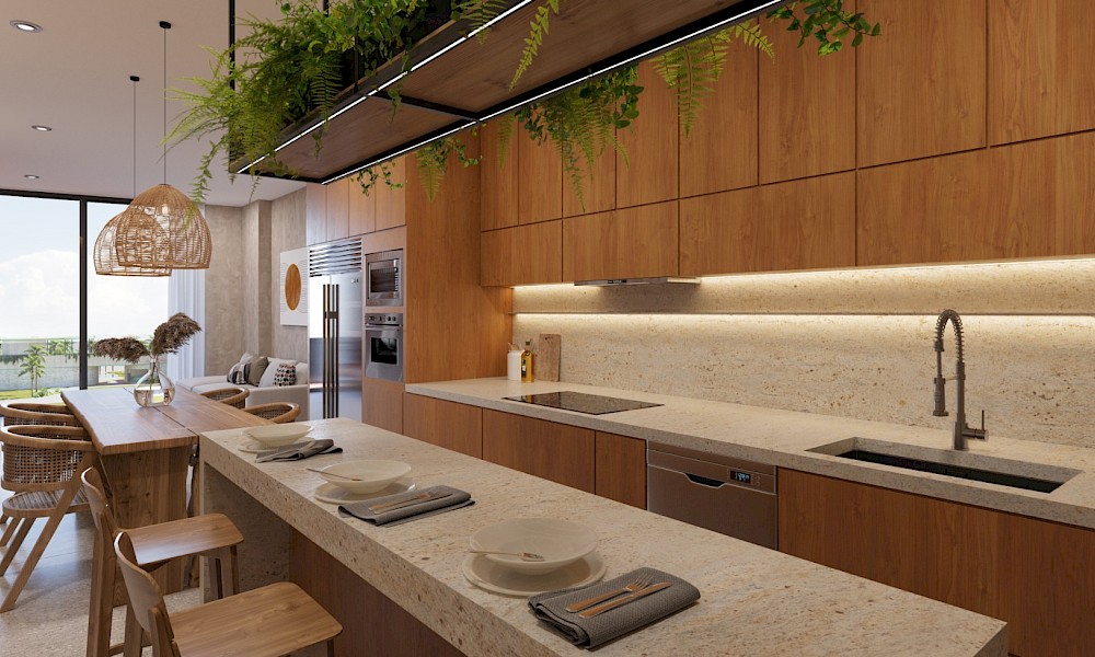 - Cocina con barra desayunadora