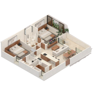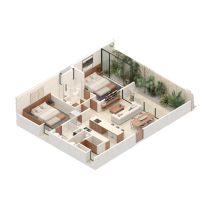 La propiedad se caracteriza por contar con dos habitaciones cada una con baño propio, además de tener la opción de contar con un área de jardín, dependiendo de su ubicación en la torre.
