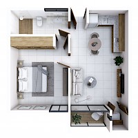 Este modelo se caracteriza por tener una habitación completamente separada del área social.