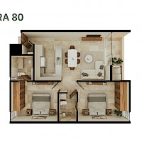 La torre Murana estará conformada de siete niveles y pertenece a la primera etapa del desarrollo. El modelo 80 se caracteriza por contar con dos habitaciones, además la unidad tiene la opción de poder ubicarse de los niveles uno al seis del edificio.