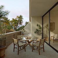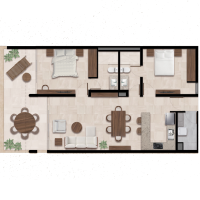 El modelo Terraza se caracteriza por su distribución en una planta con dos habitaciones y amplia terraza con vistas hermosas.