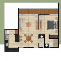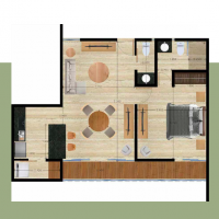El modelo E-F se caracteriza por tener una habitación con baño completo, medio baño de visitas y un balcón que brindará iluminación, ventilación y mayor sensación de amplitud en el área de sala-comedor y habitación.