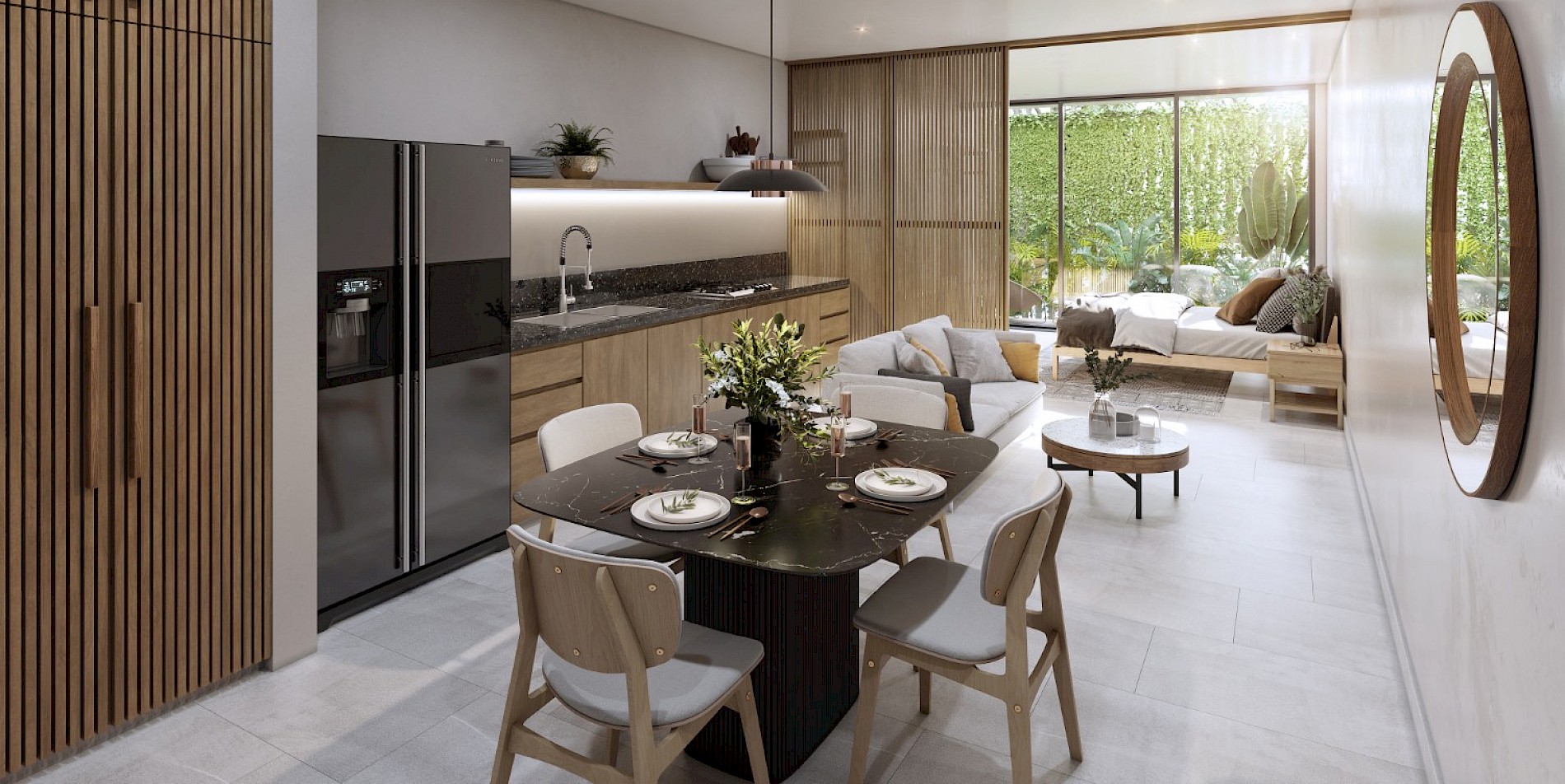 Departamentos Erudita, conformado por 48 unidades distribuidos en tres niveles dentro de un desarrollo que cuenta con amenidades, acceso controlado y seguridad 24/7. Ubicado en Temozón Norte, a un par de pasos del anillo periférico y las principales vialidades que nos llevarán a los puntos más concurridos de la ciudad.
