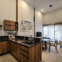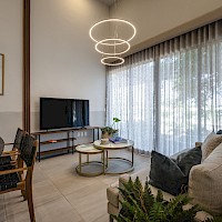 El modelo Basil que se encuentra en el primer nivel de las torres se caracteriza por contar con 2 habitaciones, la principal en planta baja y un estudio en el segundo nivel.