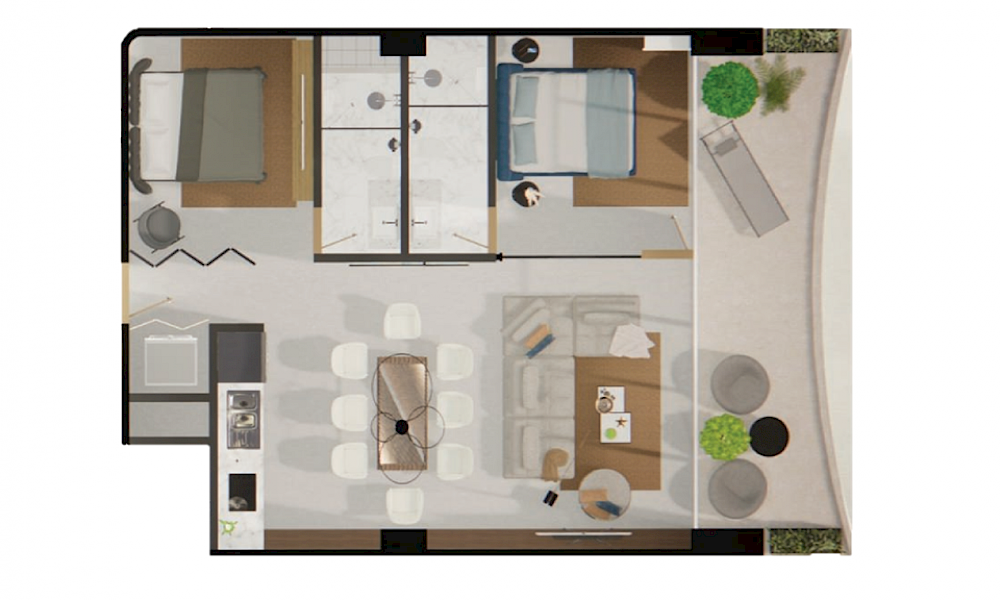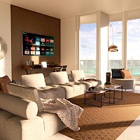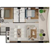 Este modelo se caracteriza por ser estar justo al frente y brindar una vista directa hacia el mar, cuenta 2 habitaciones, una opción ideal para aquellos amantes de apreciar vistas panorámicas hacia el mar.