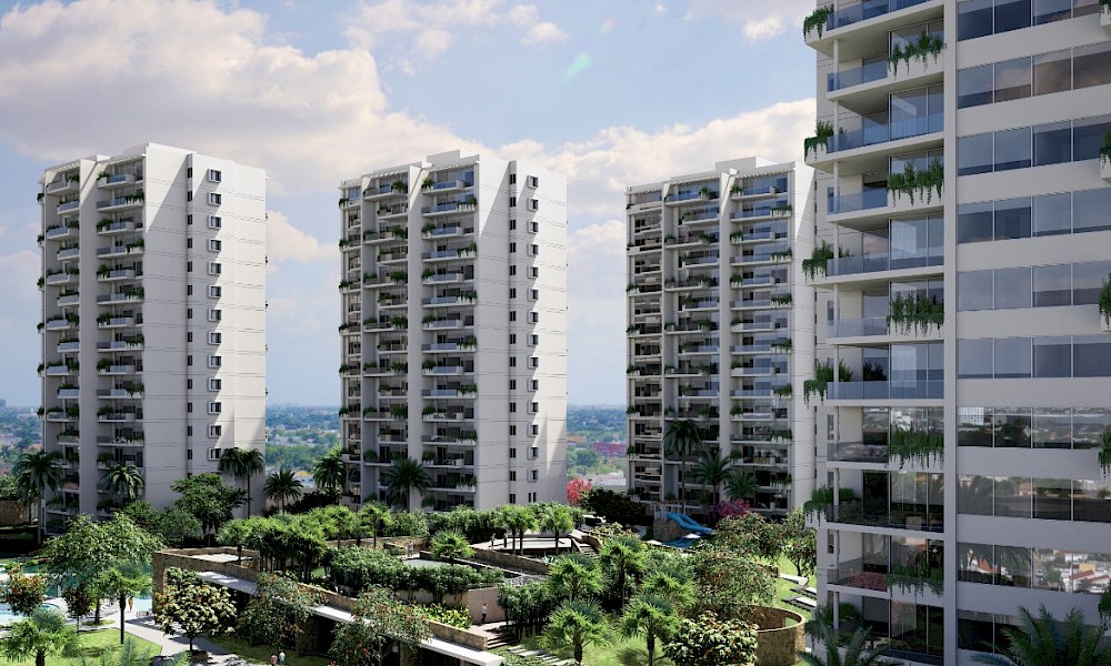 Departamentos en preventa en Infiniti, un exclusivo desarrollo residencial rodeado de aproximadamente 27,000 m2 de jardínes, parques, áreas verdes y un lago, en una de las zonas con alta plusvalía, la Avenida Cámara de Comercio.