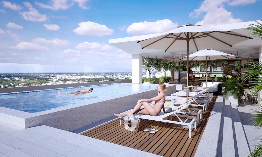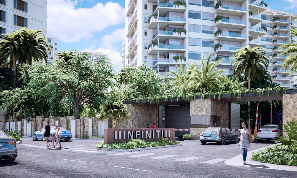 La torre B1 es la segunda de los 7 edificios que darán vida a Infiniti, que estará conformada únicamente de 613 unidades con variedad de amenidades distribuidas en cinco áreas, como Casa Club, un jardín infinito, rooftop y un exclusivo club de playa en San Benito. Este modelo se caracteriza por contar con dos amplias habitaciones, una sala de TV y una amplia terraza con vistas hermosas del desarrollo.