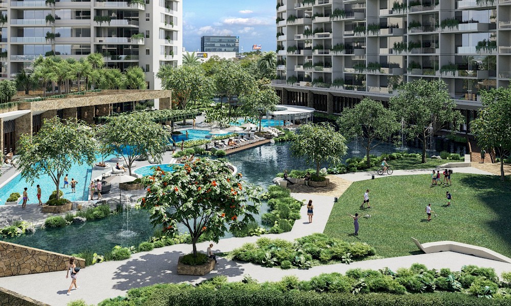 Departamentos en preventa en Infiniti, un exclusivo desarrollo residencial rodeado de aproximadamente 27,000 m2 de jardínes, parques, áreas verdes y un lago, en una de las zonas con alta plusvalía, la Avenida Cámara de Comercio.