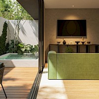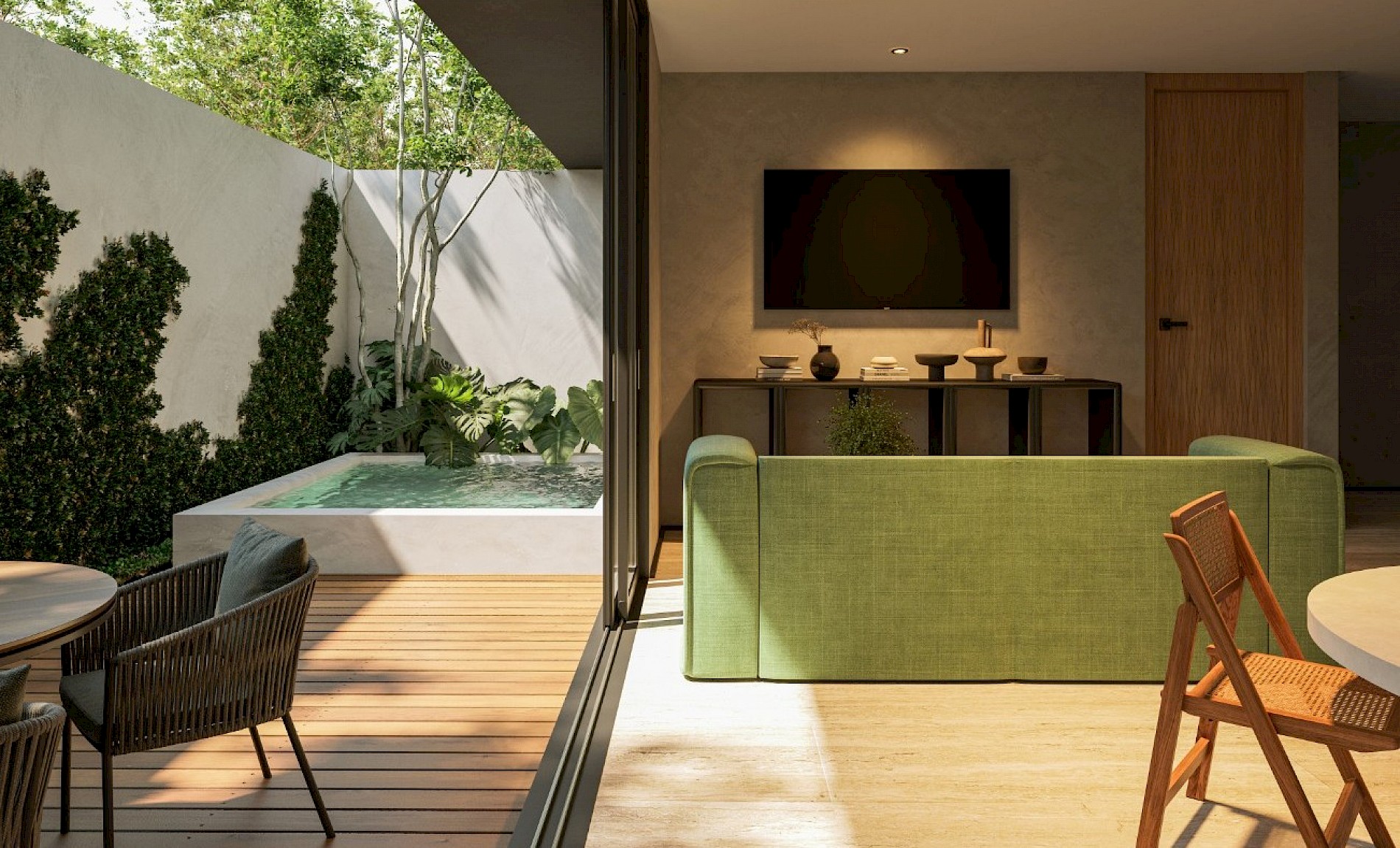 En honor a Jacinto Canek y con un sello arquitectónico regional, este complejo estará conformado por 16 departamentos divididos en una torre de tres niveles con departamentos de 1 y 2 habitaciones. El modelo Coral se carecteriza por contar con una amplia habitación, contar con la opción de un flex y estar en planta baja con área de terraza, jardín y piscina.