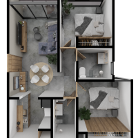 El modelo B se caracteriza por contar con dos amplias habitaciones y equipamiento bastante completo.