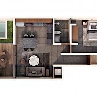 Este modelo se caracteriza por tener una habitación completamente separada del área social, brindando así, una mayor privacidad para el inquilino.