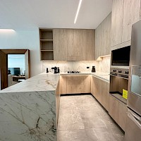 Este departamento se caracteriza por sus amplios espacios distribuidos en un nivel con dos habitaciones, una de ellas con terraza privada.