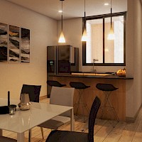 - Cocina con barra desayunadora