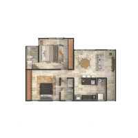 Livenza estará conformado de cuatro edificios de tres niveles cada uno. El modelo A se caracteriza por contar con dos habitaciones, una de ellas con baño propio, además de tener un equipamiento bastante completo.