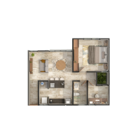 Livenza estará conformado de cuatro edificios de tres niveles cada uno. El modelo B se caracteriza por contar con una habitación y un estudio, además de tener un equipamiento bastante completo.