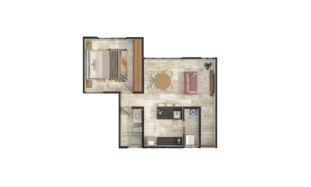Livenza estará conformado de cuatro edificios de tres niveles cada uno. El modelo C se caracteriza por contar con una habitación, además de tener un equipamiento bastante completo.