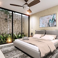 Esta opción se caracteriza por tener una habitación muy amplia y cómoda con clóset vestidor y baño propio, además de un medio baño de visitas.