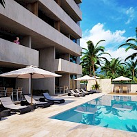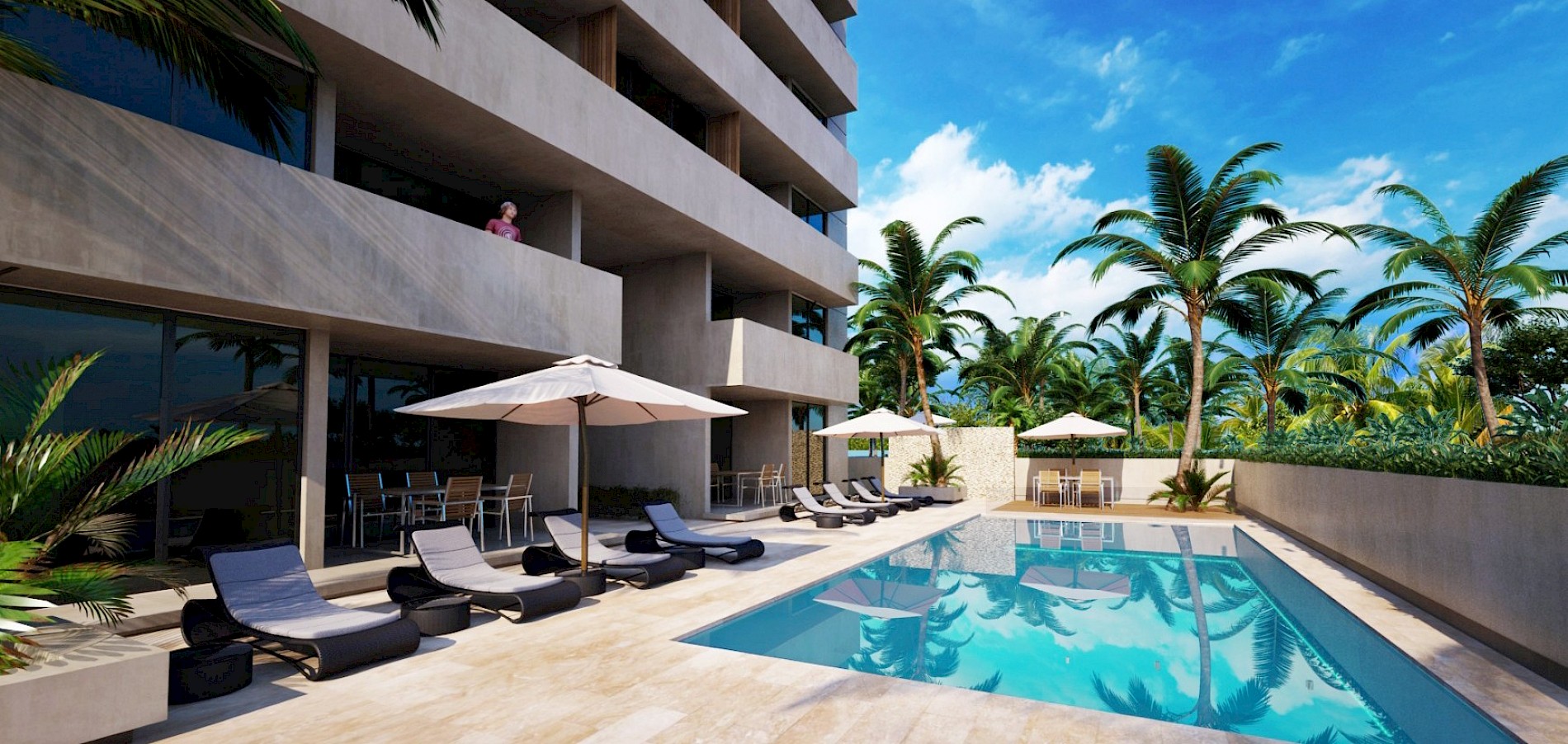 La torre, ubicada en segunda fila, cuenta con un cómodo elevador, que conecta a la planta baja donde se ubica la piscina, y un cómodo baño para uso de los condóminos en el área social. En el 5to nivel se encuentra un amplio rooftop, el cual contará con un Sky Bar, y un amplio espacio para practicar yoga o simplemente disfrutar los bellos amaneceres y atardeceres de la playa.