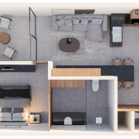 Noah se conformará de 12 exclusivos departamentos y área social de rooftop. El modelo Estandar se caracteriza por contar con una amplia habitación y una terraza techada y ubicarse en el segundo nivel de la torre.