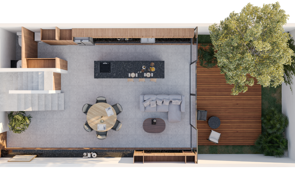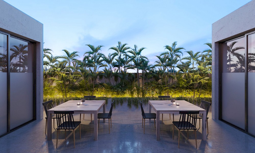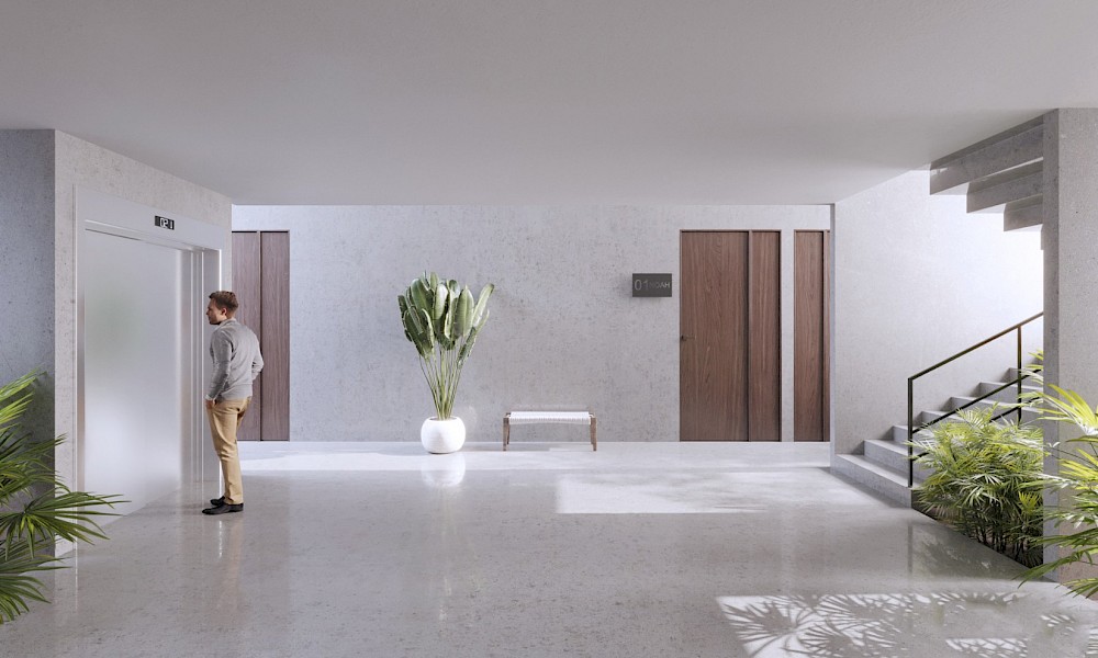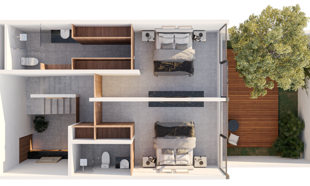 Noah se conformará de 12 exclusivos departamentos y área social de rooftop. El modelo Pent garden se caracteriza por encontrarse en planta baja con dos amplias habitaciones y una terraza.