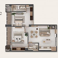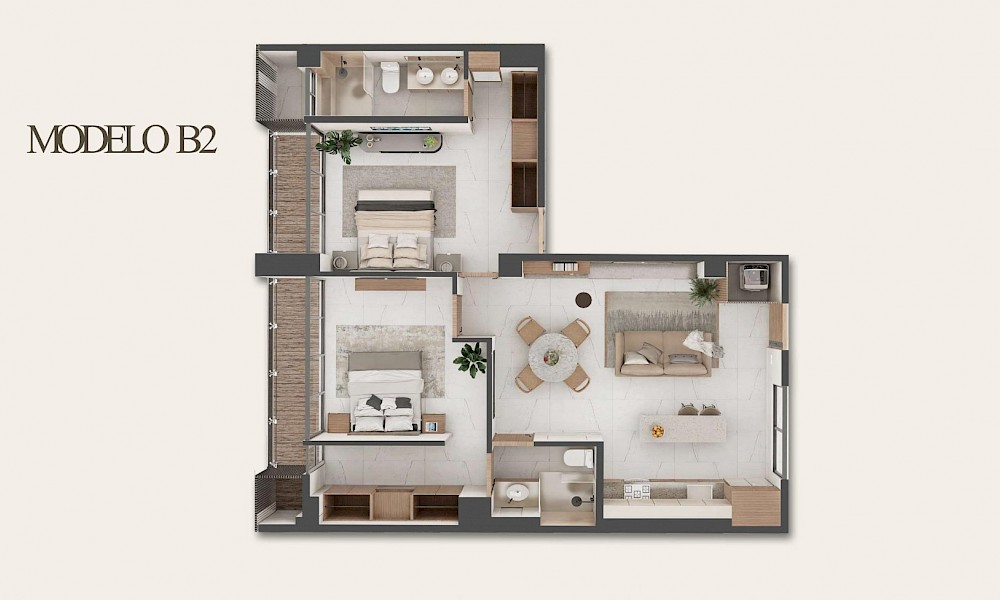 Northe24 estará conformado únicamente de 24 unidades distribuidas en cinco niveles. El modelo B2 se caracteriza por contar con dos habitaciones, una de ellas tipo "Lock Off", ideal para poner a la renta.