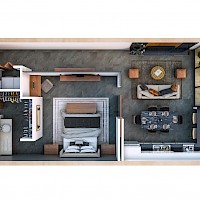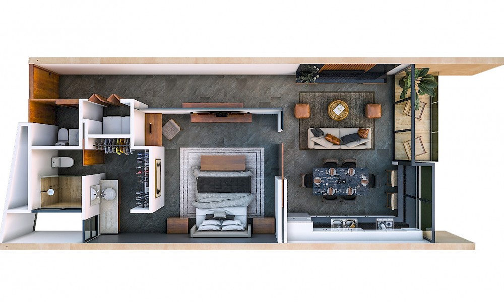 Esta opción se caracteriza por tener una habitación con baño propio, además de un medio baño de visitas.