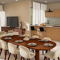 Este modelo se caracteriza por contar con tres habitaciones con baño completo y estar ubicado en la planta baja de la torre.
