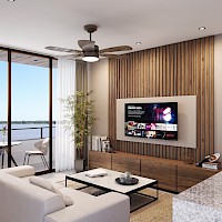 El modelo Manglar se caracteriza por contar con una habitación y un balcón en el área de sala-comedor.