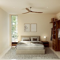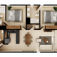 El modelo Flores se caracteriza por contar con dos habitaciones cada una con baño propio.