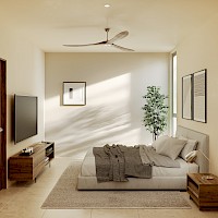 El modelo Frutos se caracteriza por contar con dos habitaciones cada una con baño propio.