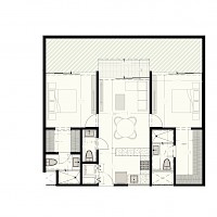 El modelo Double cuenta con dos amplias habitaciones con baño completo y área para clóset vestidor, además dependiendo de su ubicación dentro del edificio puede tener jardín o balcón.