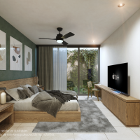 El modelo Single cuenta con una amplia habitación con baño completo y clóset vestidor, además dependiendo de su ubicación dentro del edificio puede tener jardín o balcón.