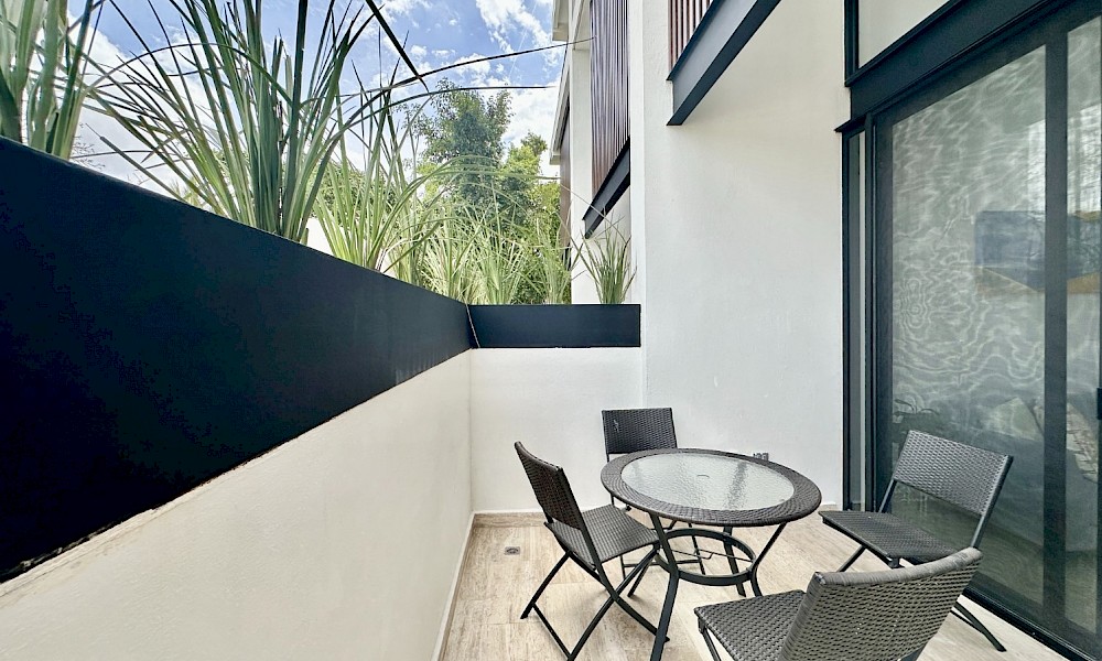 Esta propiedad se caracteriza por tener una amplia terraza privada, habitación con un amplio clóset vestidor, baño propio y un baño independiente para visitas.