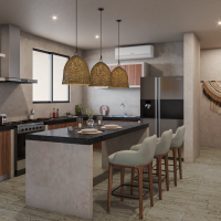 - Cocina con barra desayunadora