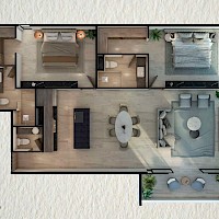 Sofía estará conformado de 71 exclusivos departamentos distribuidos en 6 niveles con variedad de amenidades y seguridad. El modelo Midfloor se caracteriza por contar con dos amplias habitaciones y una terraza con vistas hermosas de la ciudad.