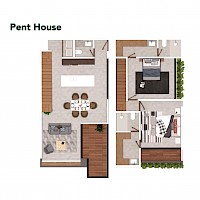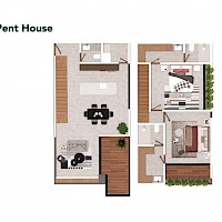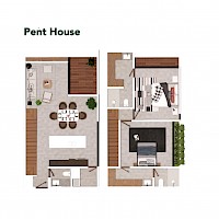 Tabalta estará conformado de 15 exclusivos departamentos distribuidos en 3 niveles con variedad de amenidades y seguridad. El modelo Penthouse se caracteriza por tener una distribución en dos plantas, con una terraza techada en el área de sala-comedor y dos habitaciones en el segundo nivel.