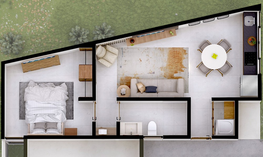 Este modelo se caracteriza por tener 1 habitación y 1 baño