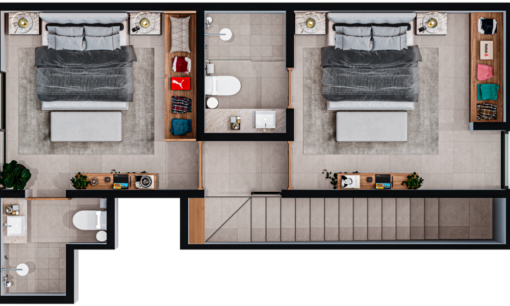 El modelo Duplex se caracteriza por tener una distribución en dos niveles, con las habitaciones en planta alta.