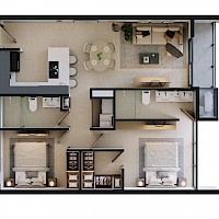 Conformado por 65 departamentos, Torre Temozón es un desarrollo diseñado como opción que pueda brindar espacios de convivencia, seguridad y tranquilidad, con todos los servicios en el mismo edificio. El modelo Studio E se caracteriza por contar con dos amplias habitaciones y un balcón con hermosas vistas de la ciudad.