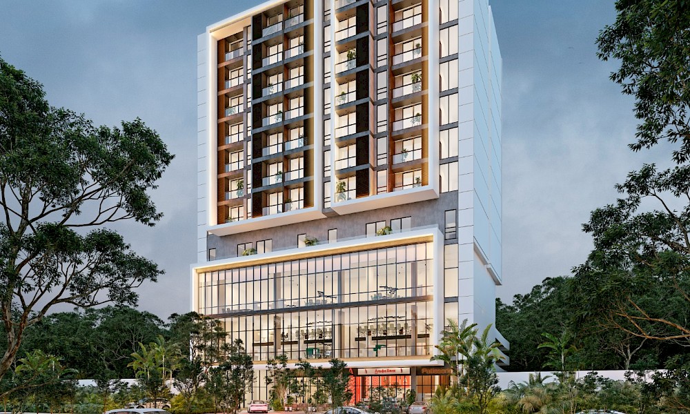 Preventa de departamentos en Torre Temozón, un desarrollo de usos mixtos conformado de locales comerciales, oficinas y departamentos residenciales ubicado en la mejor zona del norte de Mérida, Temozón. El desarrollo contará con seguridad y acceso controlado, rodeado de centros comerciales, restaurantes y todos los servicios.