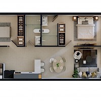 Conformado por 65 departamentos, Torre Temozón es un desarrollo diseñado como opción que pueda brindar espacios de convivencia, seguridad y tranquilidad, con todos los servicios en el mismo edificio. El modelo Studio C se caracteriza por contar con dos amplias habitaciones y un balcón con vistas hermosas de la ciudad.