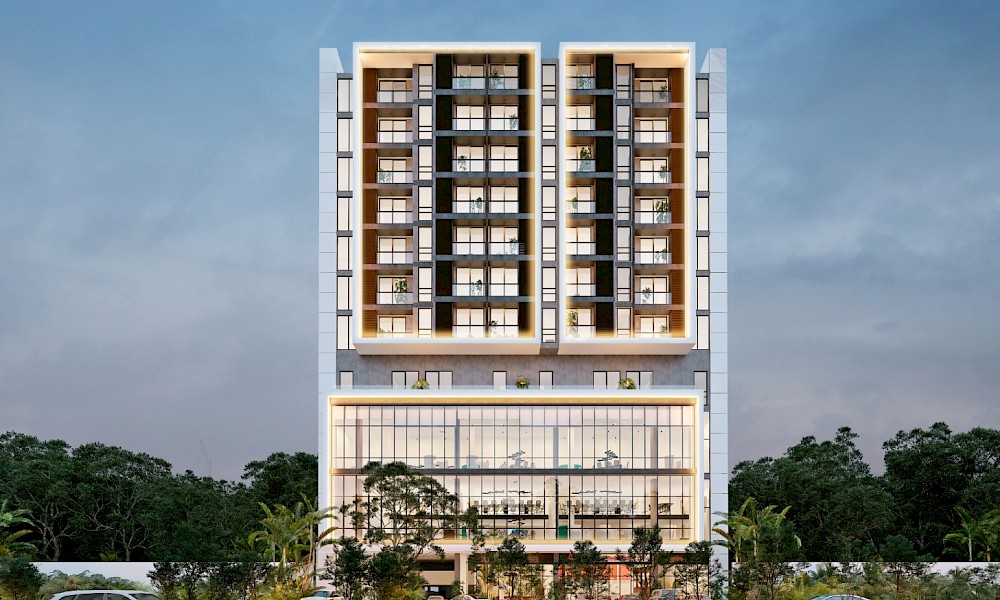 Preventa de departamentos en Torre Temozón, un desarrollo de usos mixtos conformado de locales comerciales, oficinas y departamentos residenciales ubicado en la mejor zona del norte de Mérida, Temozón. El desarrollo contará con seguridad y acceso controlado, rodeado de centros comerciales, restaurantes y todos los servicios.