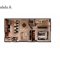 Ukana está conformado por 239 departamentos divididos en cuatro torres con 4 modelos de departamentos de 1 y 2 habitaciones. Este modelo se carecteriza por sus acabados y prácticos espacios, así como contar con una habitación.