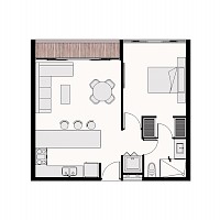 Este departamento se caracteriza por tener una habitación con clóset vestidor, y el área social con espacios cómodos.