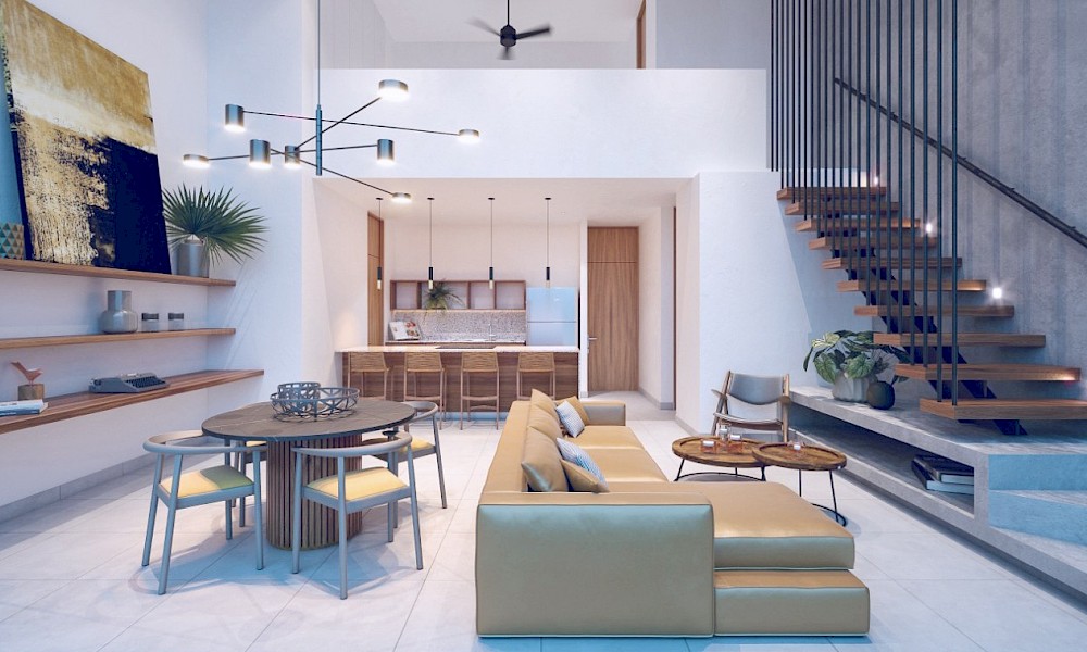 Esta opción se caracterizada por tener una habitación y estar distribuido en dos plantas, que nos brindarán ventilación e iluminación, además de una sensación de mayor amplitud.