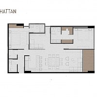 El modelo Manhattan se caracteriza por contar con dos habitaciones con baño propio, además de un estudio y terraza en área de sala-comedor.