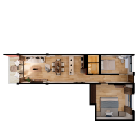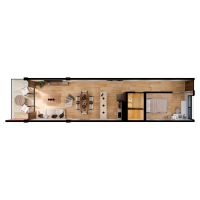 Este modelo se caracteriza por tener 1 habitación con un baño, existe una opción con una habitación pequeña adicional por una diferencia en el precio.